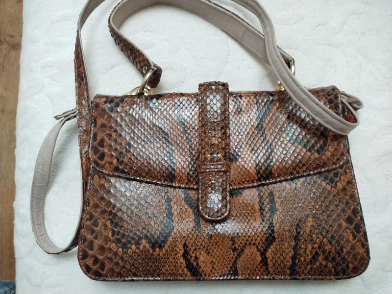 кроссбоди, ручка отстегивается, настоящая кожа питона, внутри также натуральная кожа, очень хорошее состояние, разгружается