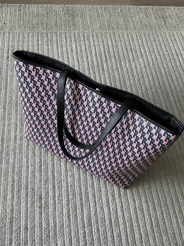 Сумка-шопер beck söndergaard в паттерні з логотипу в синьому і рожевому кольорах. Вміщає компʼютер