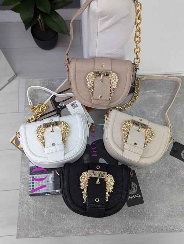 VERSACE JEANS COUTURE Якість ЛЮКС ⭐️⭐️⭐️⭐️⭐️ код чорний 20409-1 молочний 20409-3 бежевий 20409-4 ✔️Матеріал: еко-шкіра, всі бірки є. ✔️Одне відділення, два карманчика . ✔️Розмір: 21x16x11см ✔️Два ременці з'ємних. ⭐️ без фірмового пакування