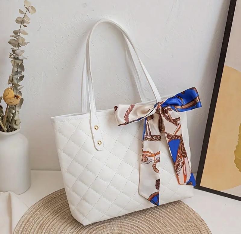 Шикарна жіноча Сумка-той з Шарфом-велика місткість, стьобана дизайнерська Сумка на плече в кольорах Хакі, коричневому, білому, рожевому, чорному / штучна шкіра, ручне прання / хімчистка