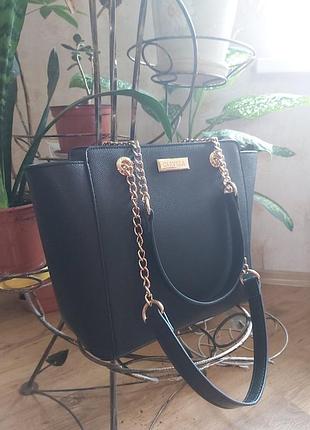Сумка из эко-кожи,хорошого качества, достаточно объемная и стильная, черного цвета, подойдет практически под любой образ.Стан новой вещи. Замеры: Высота-24 Ширина-25/35 Дно сумки-12. Ручки-60