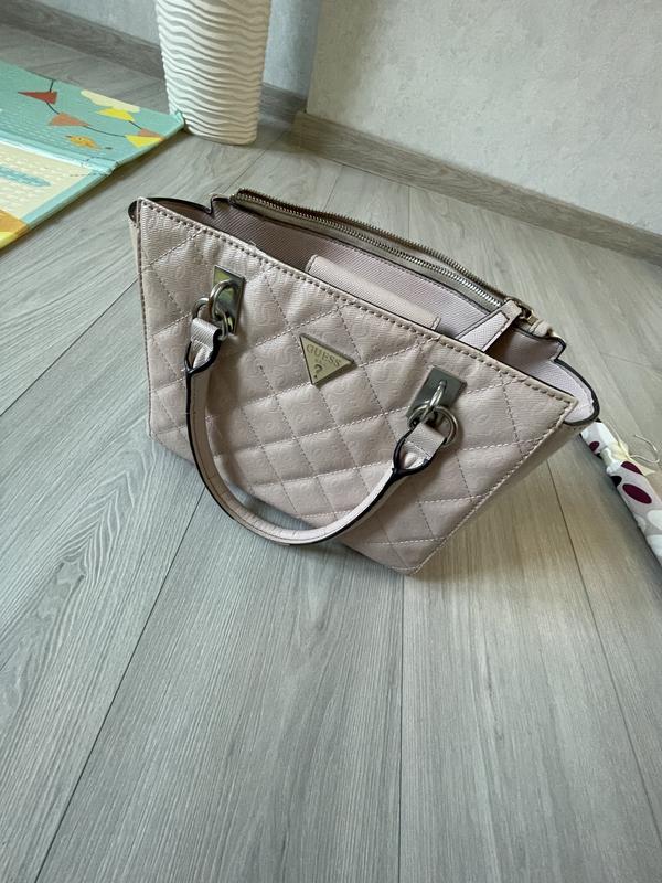 Колір: пудровий Розмір: 30 *21 *11 см Усередині одне відділення, 2 кишенька (одна на блискавці) Наявність фірмових відбитків Висота ручок 19 см Недолік на останньому фото Трохи потерті ручки