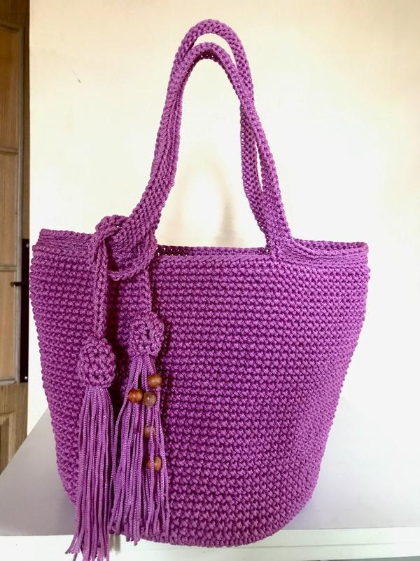 Фіолетова сумка-шопер Ручної роботи Розмір: Ширина 39 Висота 27 Діаметр дна 25