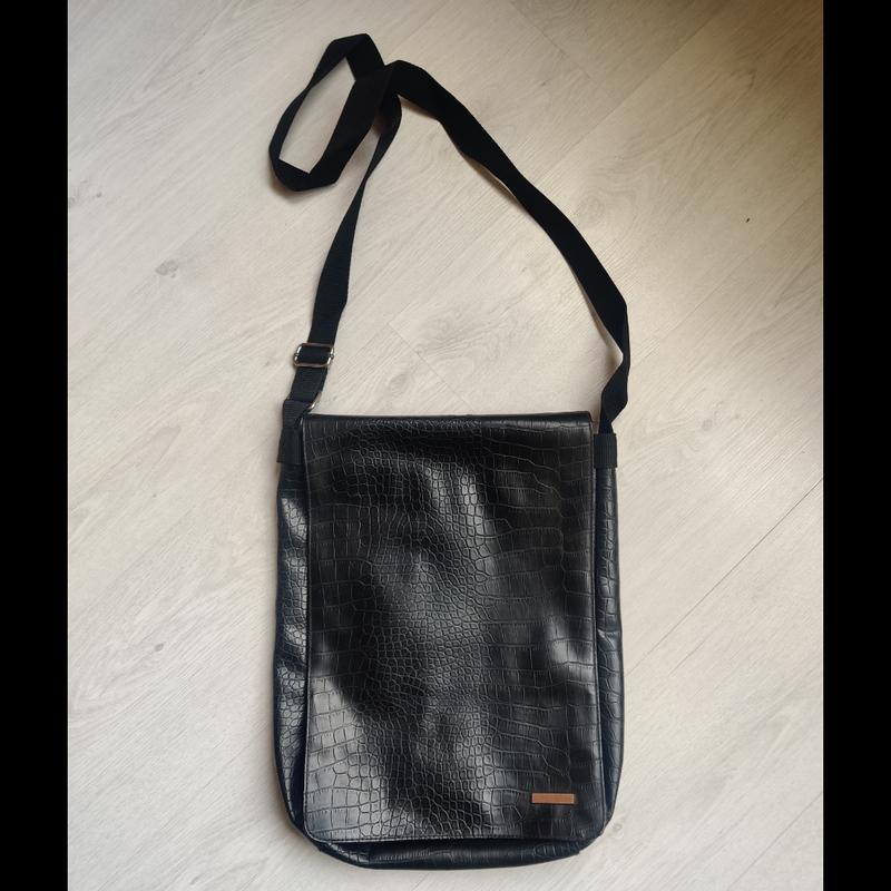через плече, формату А4. на липучці , по верхньому контуру укріплена. недоліки на 2( була підклеїна) та3( напевно заводський брак)фото. все інше в доброму стані. недоліків при новітні непомітно.