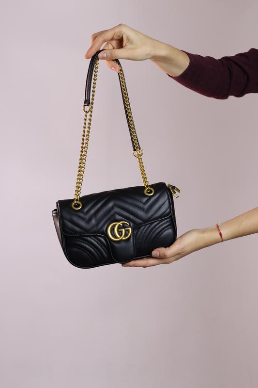marmont medium black 📌Арт: 1305: 🔗 Розмір: 22х14х7 🔗 Матеріал: Еко шкіра Сумка виготовлена з якісної еко шкіри, має одне відділення, яке застібається на блискавку. В середині відділення є бокова кишенька, що застібається на блискавку та бокова відкрита кишенька. Підкладка текстильна. Плечовий ремінь - ланцюжок зі вставками з еко шкіри, який можна носити витягнутим на всю довжину або складеним у двічі. Фурнітура золотистого кольору. Пакування: брендова коробка, папір, наповнювач, наліпка.
