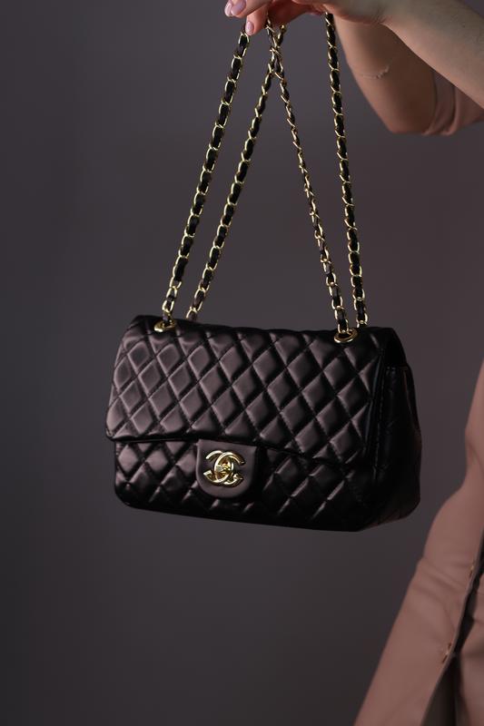 26 black Арт: 4009: Розмір: 26х16х9 Матеріал: еко шкіра Колір фурнітури: золото Сумка виконана з мягкої еко шкіри. У сумці одне основне відділення, в середині є кишеня на блискавці і відкрита кишенька. Підкладка з еко шкіри червоного кольору. На звороті є відкрита кишеня. Ремінець - ланцюжок, який можна носити складеним вдвічі або одинарним на всю довжину. Пакування: брендова коробка, наповнювач, папір.