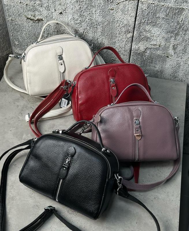 Жіноча сумочка Alex Rai. Виготовлена із натуральної м'якої шкіри. Одне відділення, що закривається на подвійну блискавку. Усередині відділення знаходиться кишеня-перегородка на блискавці, відкрита кишеня та кишеня на блискавці. На звороті є кишеня на блискавці. ⚫У комплекті регульований плечовий ремінь. ⚫Розмір: 22 * 16 * 11 см., висота ручок 5 см. ⚫Кольори на фото.