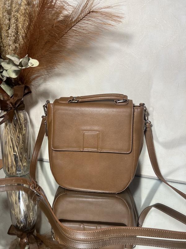 Невелика сумка, проте досить вмістка, Коричневого кольору в ідеальному стані Розміри 23*23*8 Має одне велике відділення, всередині три бічних кишені Гарно доповнить будь-який образ