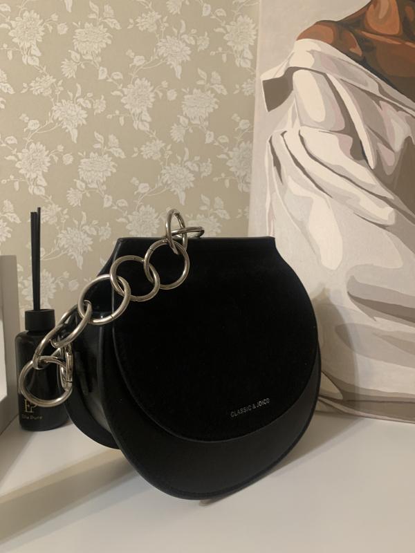 Цікава форма, незвичайний ланцюжок. Закривається на магніті. 1 відділення, маленький внутрішній карманчик.