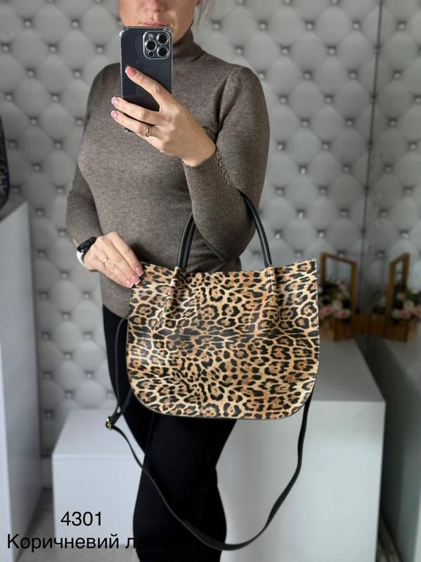 Еко шкіра + Леопардова еко шкіра Розміри: 34х27х13 Короткі ручки- висота 13 см Одне відділення на блискавці, розділене навпіл відділенням на блискавці. Всередині кишеня для телефона та кишеня на блискавці. На зворотньому боці кишеня на блискавці. В комплекте плечовий ремінь (139 см без карабінів). Код 4301 ЗАМОВЛЕННЯ З ОПЛАТОЮ ПРИ ДОСТАВЦІ ТІЛЬКИ НОВОЮ ПОШТОЮ Уточнюйте на всяк випадок наявність ВІДПРАВКА ТІЛЬКИ НОВОЮ ТА УКР ПОШТОЮ