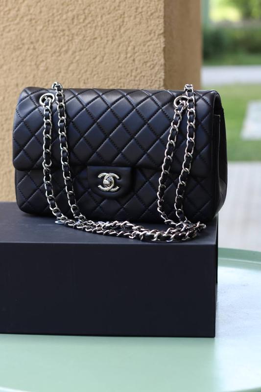 CHANEL 2.55 Classic Black Silver Арт: 4001P Опис: Розмір: 25х15х7 Матеріал: Натуральна шкіра Сумка виготовлена з розкішної, гладкої простроченої ромбами шкіри. В середині має одне основне відділення та дві бокові відкриті кишені. Також є додаткові ще два відділення та скрита кишенька на блискавці. Підкладка шкіряна, бордового кольору. На звороті є відкрита кишенька. Фурнітура брендована срібного кольору. Пакування: брендова коробка на магнітах, пильовик, буклети, документи.