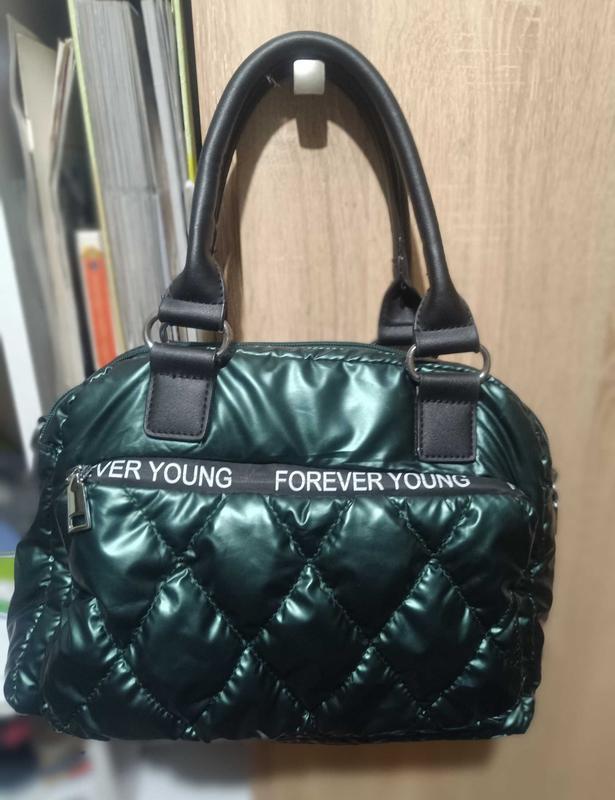 Зеленая сумка, в красивом состоянии. Б/у, мало использовалась. Удобная, вместительная. Два отделения. Спереди карманчик, все замки рабочие. Есть еще ремень на плечо
