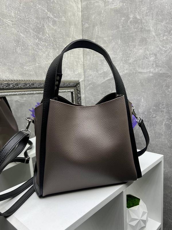Наличие уточняйте Цвета: черный, черный с красным, капучино, шоколад, темная пудра. Материал: искусственная кожа Размеры: 30 см ширина 25 см высота по центру 13 см дно Три отделения. Основное среднее отделение на молнии, внутри него 2 открытых кармана и 2 кармана на молнии. По бокам сумки два отделения на магнитных кнопках. В комплекте съемный регулируемый ремень максимальной длиной 135 см.