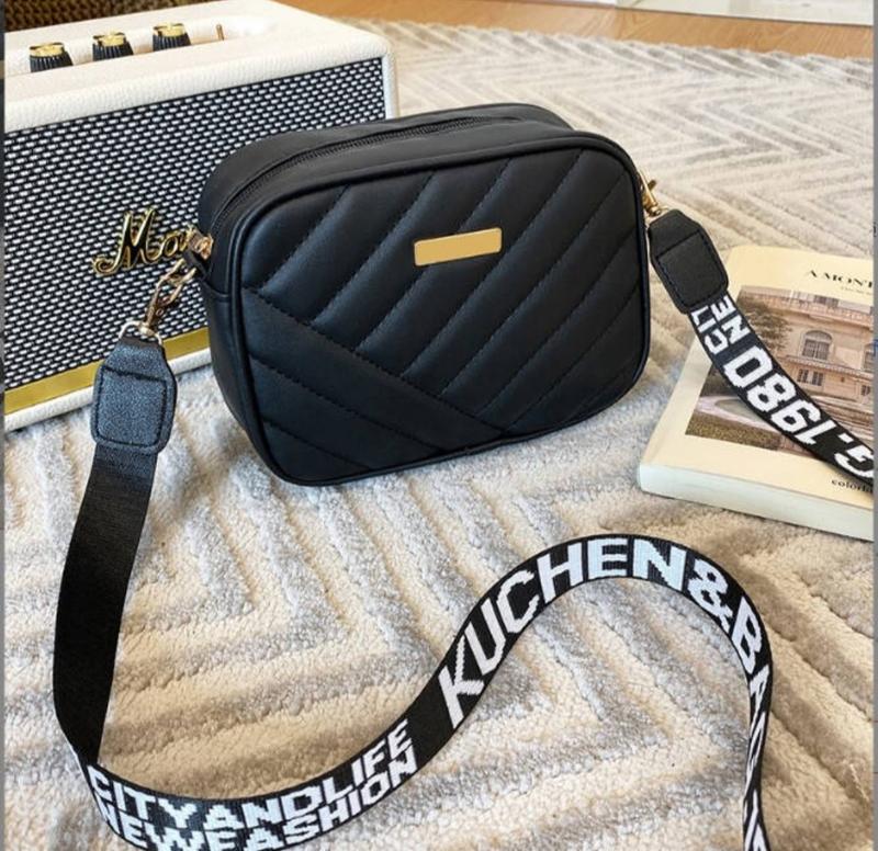 Сучасна жіноча чорна сумка через плече з екошкіри, модна трендова жіноча сумочка.