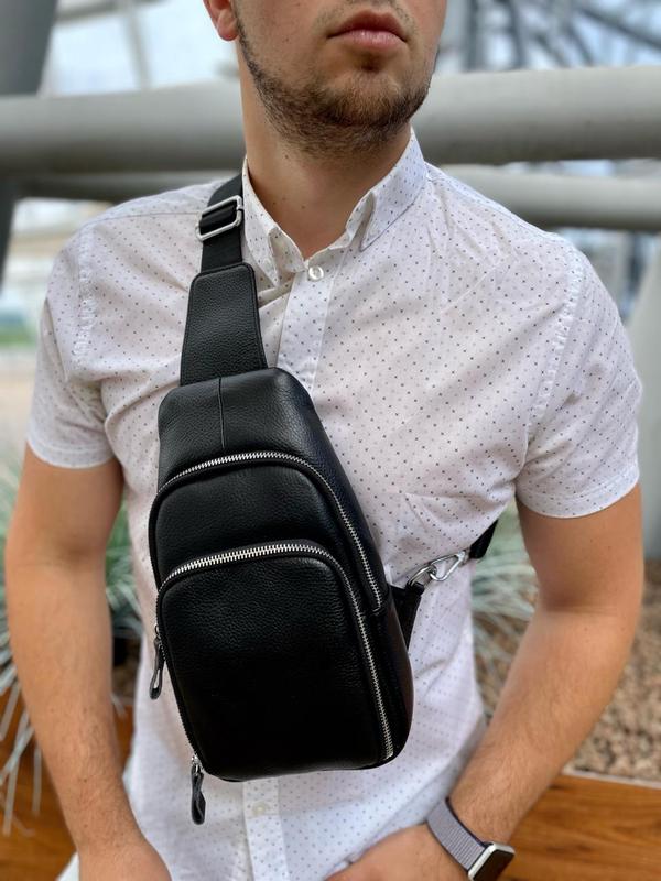 Сумка Слінг Classic Арт: slg0001 Ціна - 1690 грн Матеріал: натуральна шкіра Два основні відділення на блискавці Позаду кишеня на блискавці Всередині одна кишеня на блискавці Всередині одна додаткова кишеня без блискавки Ремінець з металевим карабіном з можливістю зміни сторони Розміри: 31х18х7.5