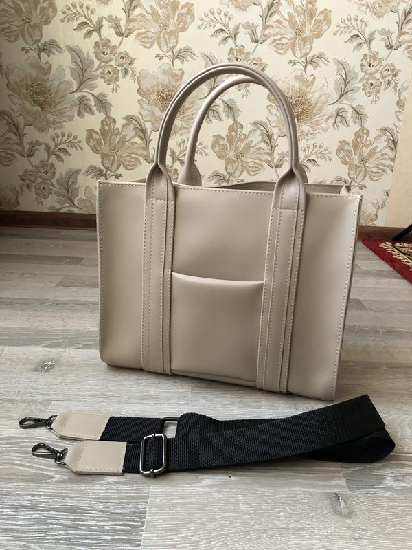 Сумка молочного кольору, екошкіра, має ремінець для зручності можна носити через плече:)