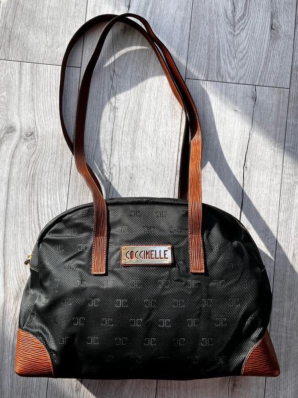Вінтажна сумка Coccindelle у чудовому вінтажному стані з ручками через плече. Шкіра та непромокальний ( наче прогумований) матеріал, як плетінка. Дуже містка. Усередині сумки все ідеально, є бічна кишенька на блискавці. Зовні на куточках шкіра трохи потерта, але це її не псує і не видно під час використання. Актуальна чорно-коричнева гама. Пишіть, питайте❤️