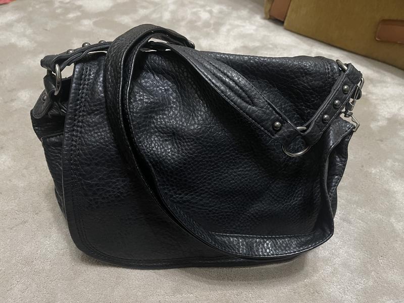 Сумка среднего размера Есть короткая и длинная ручка Очень вместительная и много карманов Состояние очень хорошее