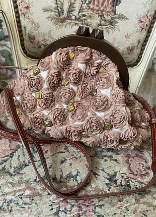 Новая сумочка ручной работы от IPA-NIMA.. Текстиль снаружи и внутри, шлейка натуральная кожа. Цвет бежевый. Внешне декор в виде объемных роз и кристаллов.. Застежка -плотной пластик.