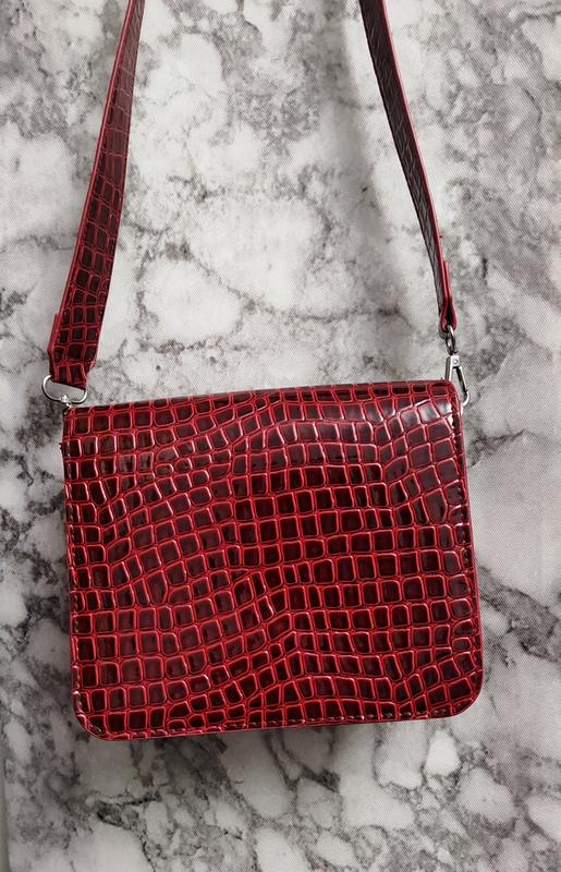 Неймовірно стильна лакова сумочка vero moda бардово кольору з цікавою структурою і без зайвих деталей, середній розмір, підійде для всіх сезонів і будь яких подій. Сумочка добре тримає форму. Стан нової. Має одне відділення і внутрішню кишеню. Одна довга ручка. Доволі вмістка. Може підійти для вечірнього образу і також для повсякденного життя. Висота сумочки 20 см. Ширина 23 см. Ширина низу виробу 9 см. Ширина боці 8 див.