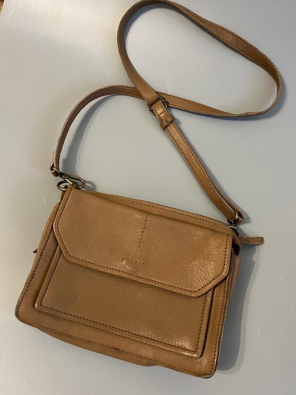 Сумка Esprit в гарному стані Легке б/у Якісна зерниста шкіра Має три відділення (два на молнії+ внутрішній, один на магніті) Колір кемел Заміри: 17*21 см Дно розтягується до 12 см Ручка до 131 см (регулюється)