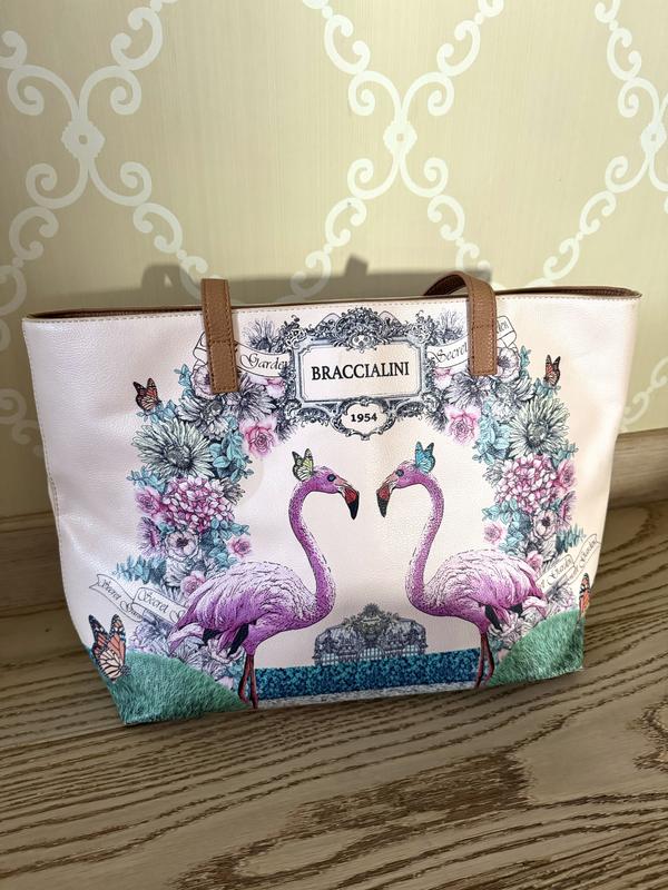 Материал: кожа искусственная Ширина: 44 см Высота: 29 см Ширина по дну: 35 см Количество отделов: большой отдельный отдел внутри на замке, два вшитых открытых кармана и один карман на замке. Сумка в отличном состоянии. Очень удобная и практичная. Идеально подходит на весенне-летний сезон.