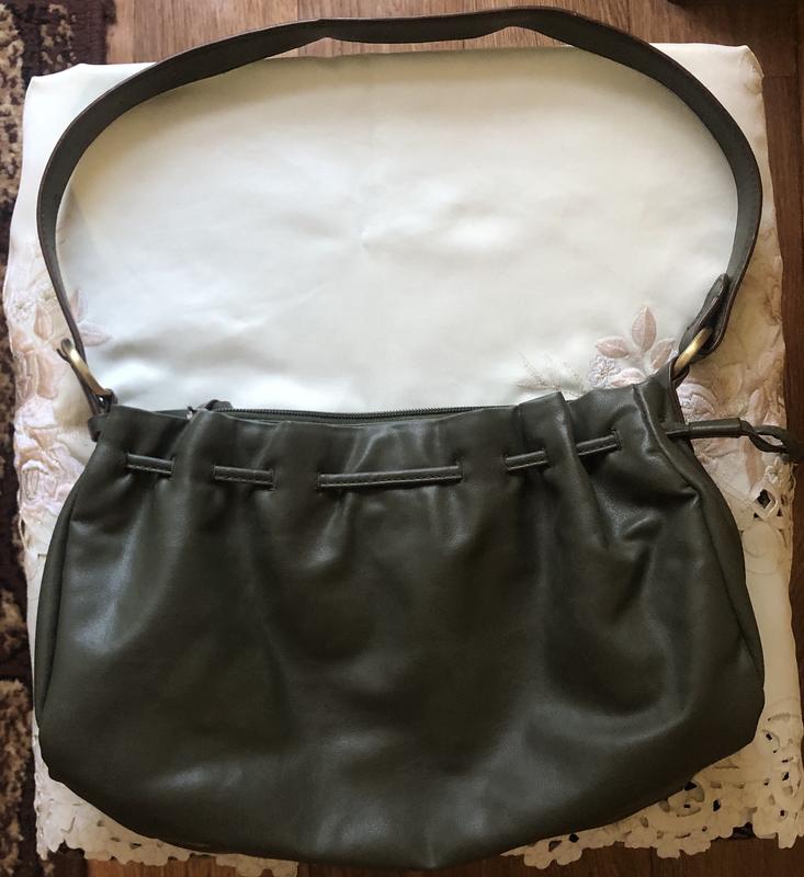 Стильна сумка на плече, гарний колір з напиленням під вінтаж. Є зав’язка збоку можна трансформувати форму. М’яка екошкіра, три відділення та кишені. Відправлення Нова Пошта, УкрПошта