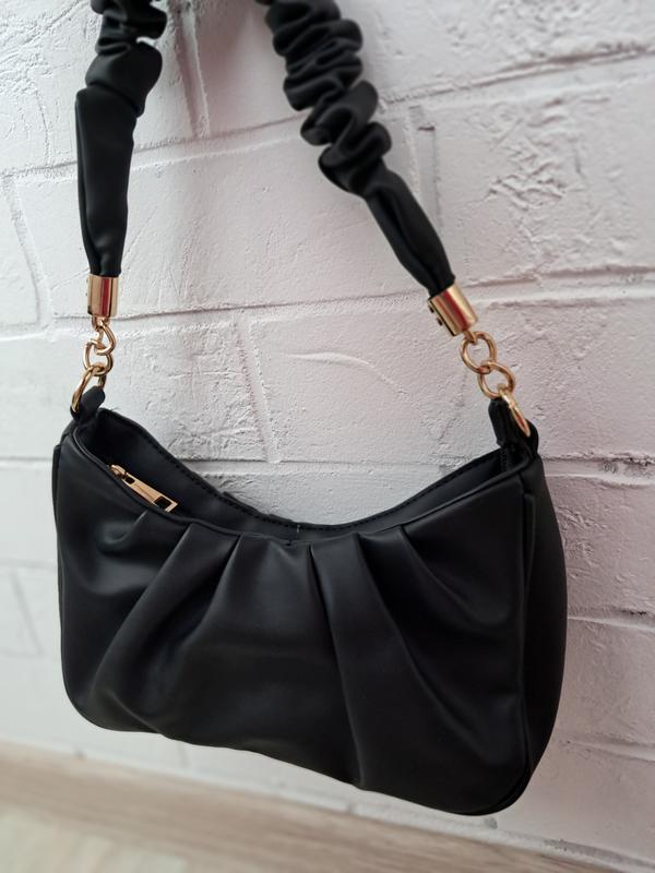 Стильная сумка Primark * Дизайн: Черная сумка с необычным дизайном. Мягкая текстура и драпировка придают ей элегантный вид. * Ручка: Удобная ручка из мягкого материала с золотистыми элементами. * Материал: Искусственная кожа высокого качества. * Отделения: Внутренние карманы для удобного хранения мелочей. * Особенности: * Универсальный цвет. * Качественная фурнитура. * Подходит для разных стилей. Преимущества: * Стильный и модный аксессуар. * Высокое качество исполнения. * Удобная в использовании. Эта сумка станет отличным дополнением к вашему гардеробу! Дополнительная информация: * Производитель: Primark. * Страна производитель: Польша. * Жесткость: Мягкая. * Материал: Экокожа.