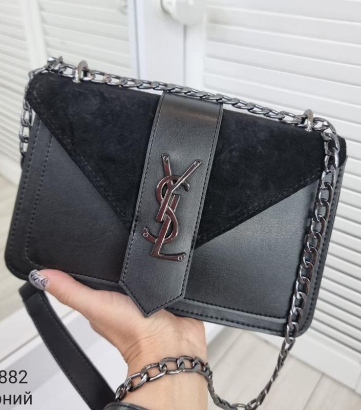 сумка кроссбоди черная на цепочке екокожа Ширина - 23 см, висота - 15 см, дно - 7,5 см + довгий ремінець ( довжина 122 см )