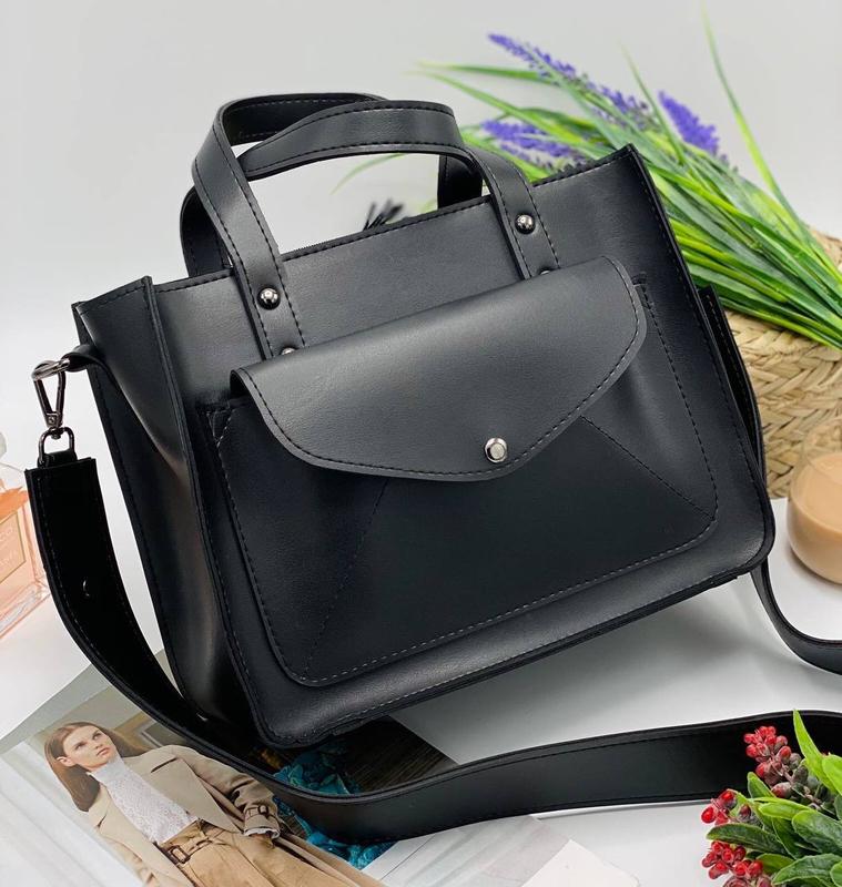 Женская трендовая сумка 🩶 ⚫️Фото и видео реал ⚫️Модель: 064 ⚫️Размеры: 28*21*11 см ⚫️Ткань: экокожа ⚫️Количество отделений-1 ⚫️Цвета: черный, черный крокодил ⚫️Цена: 850грн Для любительниц total black - все наши модели могут быть выполнены в черном цвете 😌Самый элегантный цвет эвер!