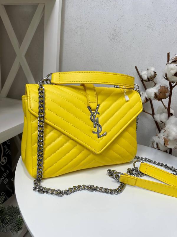 Сумка Лоран смужки Ціна: 880 грн Матеріал: екошкіра йде в пильнику Колір: Жовта ремінець ланцюжок комбінований На змійці у середині Розмір: 24/16