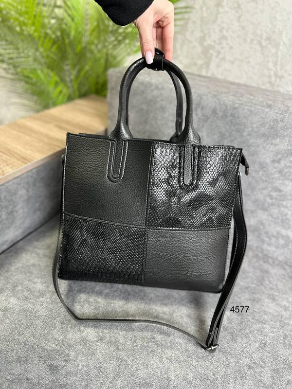 🔝🔥Код 4577 🆕🔥Стильна містка сумка. 📚вміщує аркуш А4. ✔️еко.шкіра фактурна/пітон. ✂️ширина 32 см.,висота 27 см.,дно 12 см.,ремінець до 135 см. ✔️Сумочка на три відділення: - середнє основне відділення на блискавці. -два відкритих відділення.