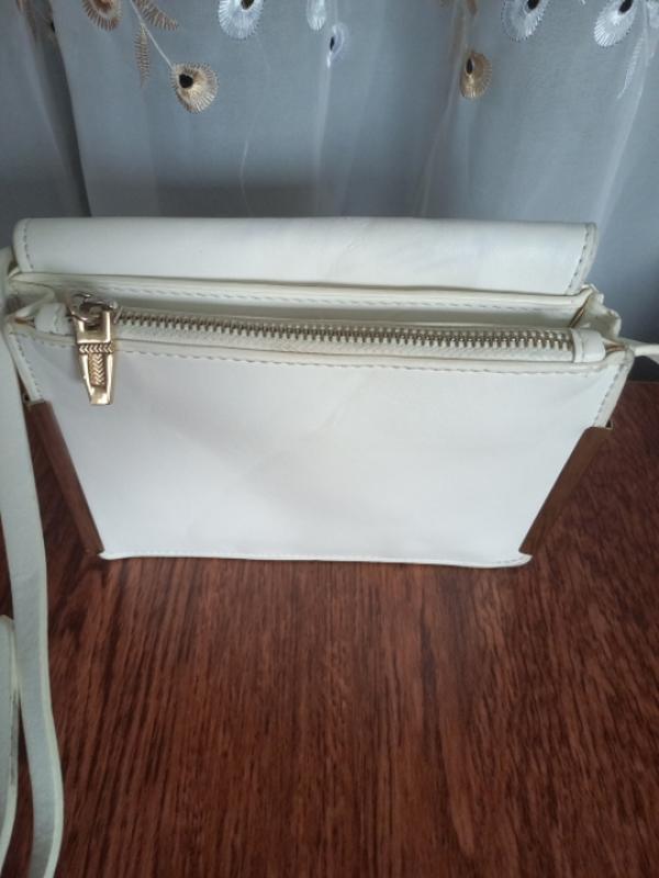 Маленька біленька сумочка, має три відділення, ремень регулюєтся, розмір 19×14×5. Подарунок к будь-якій покупці.