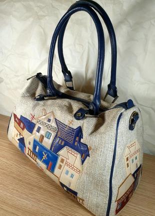 Продам оригинальную сумку украинского производителя Цвет: Бежевый/темно синий Материал: Эко-кожа/текстиль Состояние: Б/в/в хорошем состоянии, с незначительными потертостями (последнее фото) Размеры: 29/35/20 Детали: Закрывается на замочек, удобная ручка для ношения в руке, помещается А4 и ноутбук, есть много внутренних кармашков Идеально подходит: Для работы, учебы