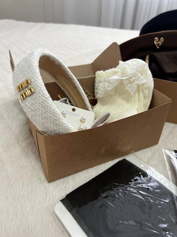 В наявності бокси,які складають із стильни аксесуарів:берети,обручі,сумочки,ремінь,колготи,сережки,носки,детальніше в приват