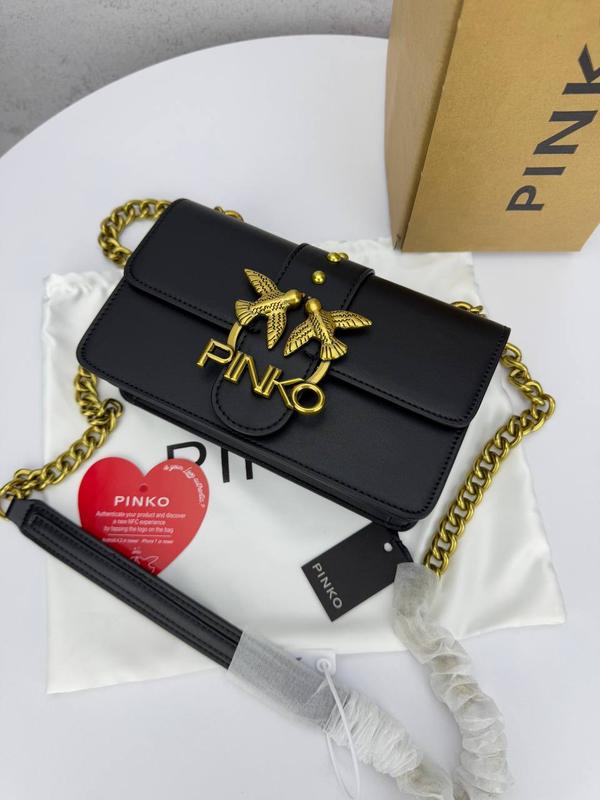 ⭐️PREMIUM ⭐️ Pinko Black Gold Logo Арт. P14010 ▫️Матеріал: шкіра ▫️Розмір: 21x12x7 см ▫️Всередині лого ▫️Шкіряна підкладка ▫️Металева брендована фурнітура ▫️ Сканується по NFC ▫️Комплектується в брендовану крафт коробку, пильовик, бірка. 📂