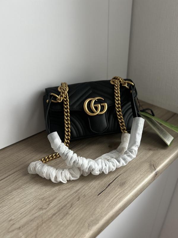 Marmont Mini Shoulder Bag, Black #art0151 ➖Размер: 22х13x6 ➖Материал: кожа ➖Один отдел, боковой карман ➖Цепочка имеет фиксированную длину с кожаной ручкой. Регулируется как для ношения в руке так и через плечо. ➖Комплектация: защитная коробка, фирменная коробка на магнитах, документы, пыльник, лента,бирка, qr код.