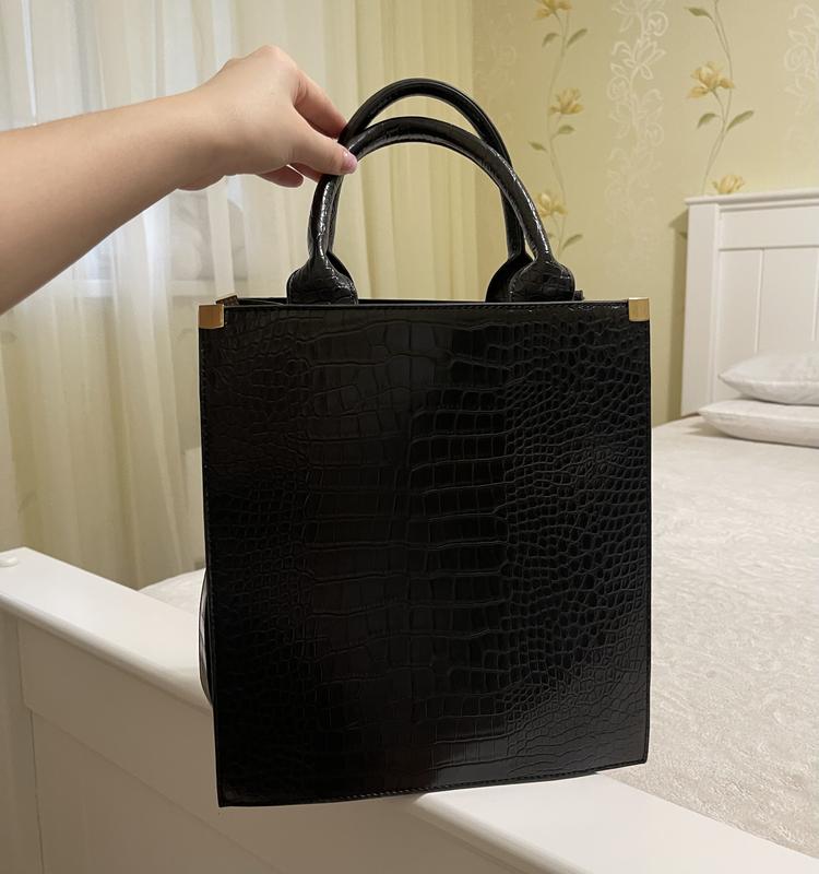 Квадратна сумка від Reserved, типу під крокодила, має додатковий довгий пасок, всередині один відділ, та ще три маленьких кишені, збоку присутні золоті вставки 👜