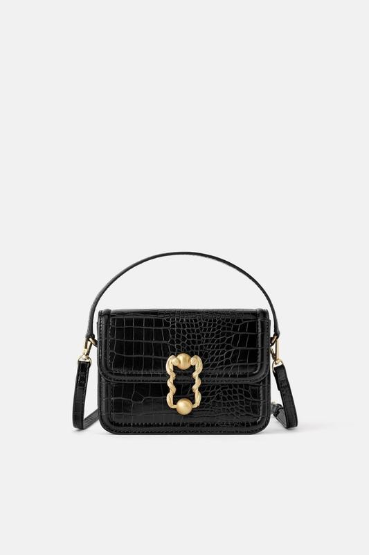 Преміум серія Zara, шкіряна міні сумочка з тисненням під крокодила. Має Два ремені ручки. Золота фурнітура. Одне відділення, але вмістка. Стан 5+