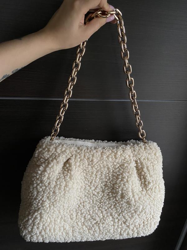 белая сумка Teddy с золотой цепочкой – идеальный аксессуар для стильных и современных женщин.
