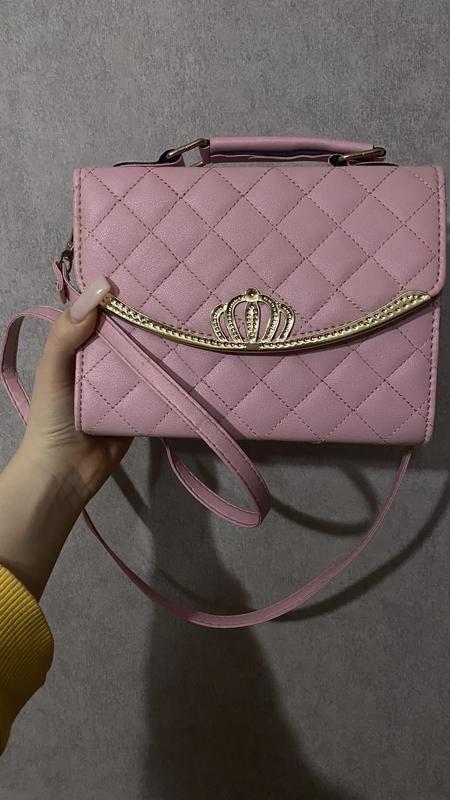 Сумка розовая, с золотой фурнитурой, подойдет для маленькой девочки принцессы, новая, ни разу не носила, состояние новый, идеальный, внутри два больших отверстия и один маленький на застежке.