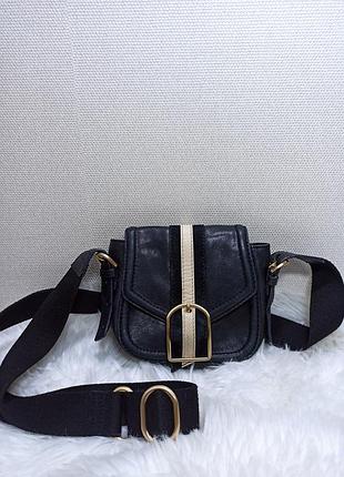 невелика шкіряна (нубук) сумка спортивного стилю на широкому тканинному ремінці. Незважаючи на невеликий розмір, має два внутрішніх відділення. Довжина реміньця регулюється. Ширина 18 см, висота 16см, товщина 6см. Ремінець має невеличкі катишки.