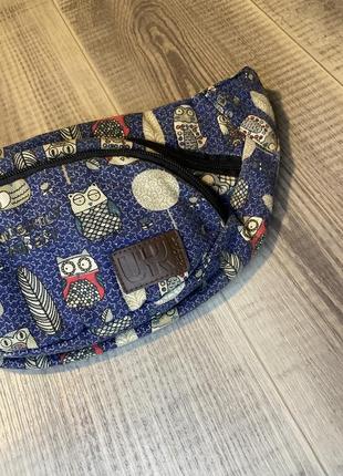 Поясна сумка (бананка) з принтом сов Стильна та практична поясна сумка, ідеальна для прогулянок, подорожей і щоденного використання. Яскравий принт із совами додає оригінальності та робить аксесуар виразним елементом будь-якого образу. 🔹 Характеристики: • Матеріал: міцна текстильна тканина • Колір: темно-синій із принтом сов і декоративних елементів • Відділення: два основні відділення на блискавці • Ремінь: регульований, що дозволяє підлаштувати сумку під потрібний розмір 🔹 Переваги: ✔️ Легка та зручна в носінні ✔️ Містка для зберігання ключів, телефону та інших дрібниць ✔️ Якісна фурнітура та зносостійкий матеріал ✔️ Універсальний дизайн, який пасує до різних стилів Чудовий вибір для тих, хто цінує комфорт і яскраві акценти в повсякденному житті!