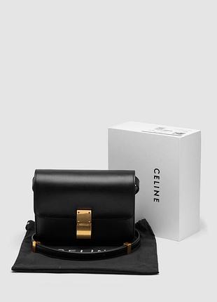 Celine Classic Box Medium Black/Gold 📐 Розмір: 21 х 15 х 6 см 🧵 Матеріал: Шкіра 10-12 р.дні ⏺ Опис: Сумка виготовлена з гладкої натуральної пресованої шкіри. Всередині два більших відділення, та менше на застібці. Підкладка з гладкої шкіри, з брендовим тисненням. Зачиняється відділення на оригінальному механізмі прищіпці. Фурнітура металева та брендована. Шкіряний ремінець для носіння через плече регулюється за довжиною. Комплектується в брендовій коробці на магнітах та пильовику.