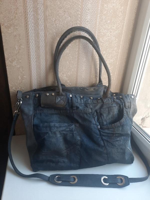 Новая сумка из натуральной кожи с джинсой, размер высота 30 см, ширина 16 см, длина 38 см.