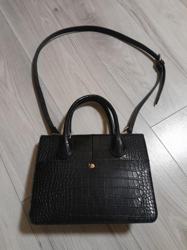 Сумочка EVEN&ODD імітація шкіри крокодила Є карманчік на кнопці попереду сумки,на застібці всередині сумки і два невеличких всередині без застібки Висота 20 см Ширина 26