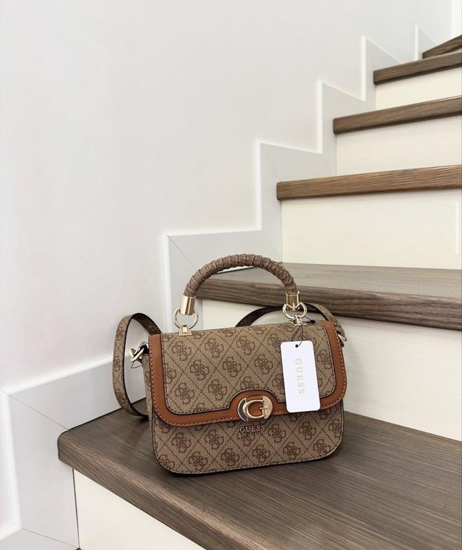 Довжина 22 см Висота з ручкою 24 см,без ручки 17 см Глибина 7 см 4400rpH Стильна сумка Guess, ідеальний вибір для доповнення будь-якого образу! Опис: • Бренд: Guess • Матеріал: якісний еко-шкірозамінник з фірмовим тисненням логотипу • Колір: коричневий з карамельними вставками • Фурнітура: золотистого кольору • Ручка: ручна коротка ручка, обмотана декоративним матеріалом • Довжина ремінця: регульований ремінець для носіння через плече або крос-боді Застібка: стильна металева деталь у вигляді літери "G" Особливості: Ця сумка Guess - поєднання елегантності та практичності. Ідеальна для щоденного використання або особливих виходів! Сумка була куплена в офіційному магазині в Європі ( додатково є пакет і коробка)