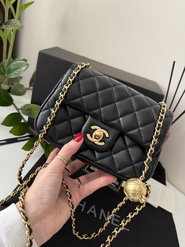 Classic Flap Bag -Код товару: A0055 -Матеріал: Шкіра -Колір: Чорний -Фурнітура: Золотистого кольору -Розміри: 18 × 13 × 6 см -Країна виробництва: Китай 🇨🇳 -Закриття: Клапан на кнопку -Відділення: основне відділення Внутрішня кишеня -Ремінь: Ланцюжок із шкіряним плетінням Декоративний елемент у вигляді кулі з логотипом Chanel Довжина дозволяє носити через плече або на плечі -Стиль: Класичний, елегантний