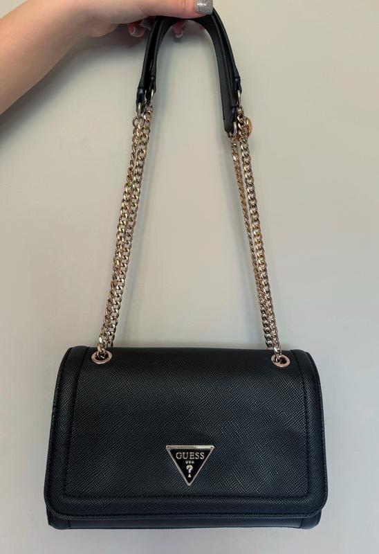 Міні-сумка Guess, колір чорний Штучна шкіра зовні. Застібка на клапані та застібці. Розміри: 24x15x7 см Є пильник брендований, та пакет Закупівельна ціна 7000грн