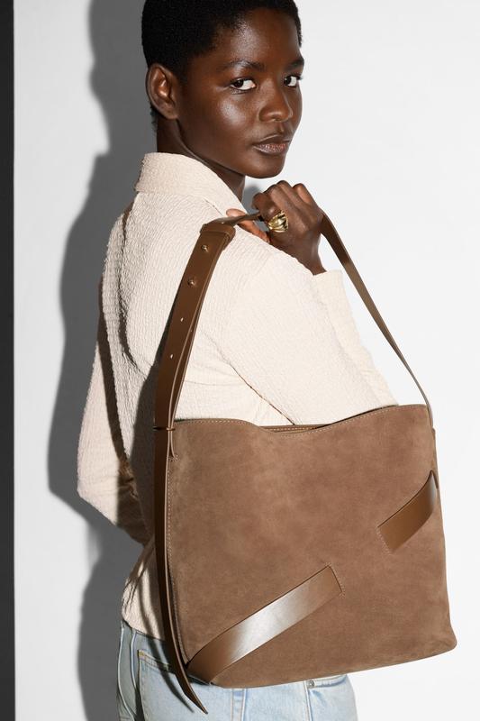 9400 🌸Оплата лише за доставку з Іспанії 4 дні🌸 Нова колекція Ця сумка типу куба виготовлена з м'якого замшу і має контрастні шкіряні обробки, включаючи регульований ремінь для плеча. Вона спроектована з золотистими фурнітурами та прихованим магнітним замком. В її внутрішній частині легко поміститься книга, пляшка води, футляр для сонцезахисних окулярів і косметичка. Висота: 27 см/10,6" Ширина: 26 см/10,2" Глибина: 14 см/5,5" Довжина ременя для плеча: 51 см/20,1" Внутрішня кишеня: 19 см x 12 см/7,5" x 4,7" Артикул: 1262533002